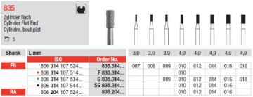 Diamant bor 835 FG 009, 5 stk. Sylinder flat ende, standard.