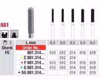 Diamantbor til turbin. Cylinder rund ende, grovhed: fin, længde: 8,0 mm.