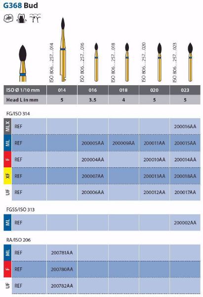 Diatech Diamant G368-314-016-3,5-M, 5 stk. eggformet spiss topp blå ring