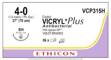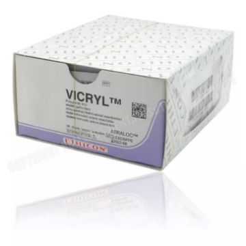 1/2 sirkel, rund nålekropp med skjærende trekant-spiss 26 mm lang nål, trådstørrelsen er 0,2 mm tykk og 70 cm lang. Ufarget tråd Hurtig resorberbar. 12 stk i esken