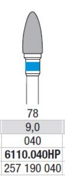 Hårdmetallfreser til håndstykke. Denture 10. Cross cut standard. Fig. 78 Grovhed: Standard (Blå ring), længde: 8,9 mm.