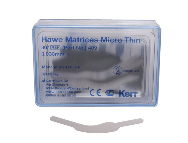 Hawe matriser rustfri stål micro/tynn 409, molar m/1 tunger 0,03mm 30stk