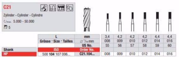 Metallbor C21 HP 016, 5stk. Sylinder
