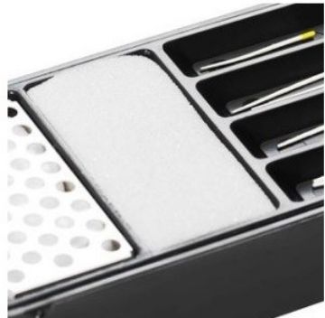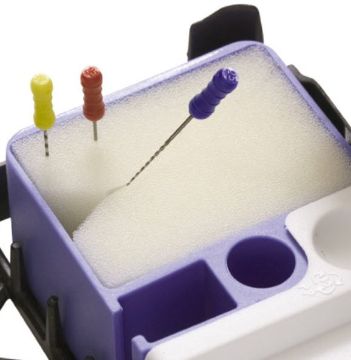 Skuminnsatse med rille til avskrabning af debris på file og instrumenter.