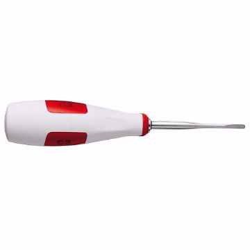 Elevator, C3, buet, 3mm. Til elevering av tenner ved ekstraksjon. Ergonomisk håndtak i plast, rød.