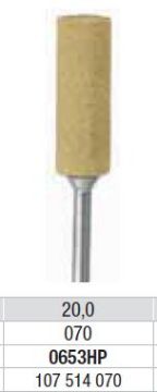 3- trins polerer system til protetisk eller ortodontisk akryl. Grå: trin 2, medium kornet. Anvendes til at glatte overfladen. Stor flammeformet. Silikon polerer til proteser af akryl, som erstatning til sandpapir. Gul til polering. Længde: 20,0 mm.