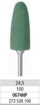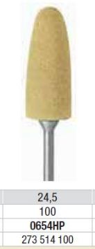 3- trins polerer system til protetisk eller ortodontisk akryl. Grå: trin 2, medium kornet. Anvendes til at glatte overfladen. Stor konisk formet. Silikon polerer til proteser af akryl, som erstatning til sandpapir. Gul til polering. Længde: 24,5 mm.