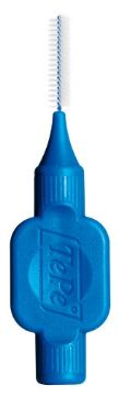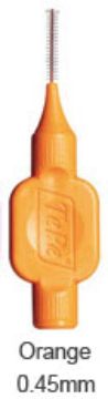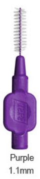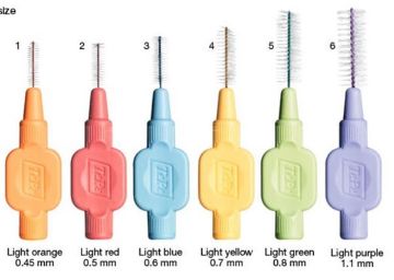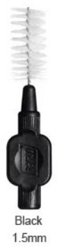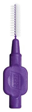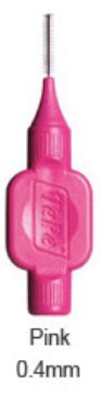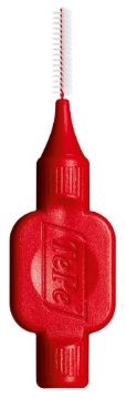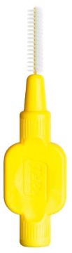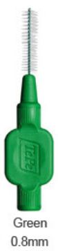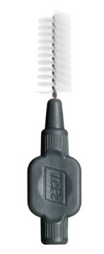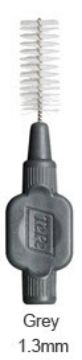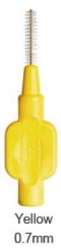 Interdentalbørster med kraftigt, bredt silikonehåndtag og plastbelagt tråd.